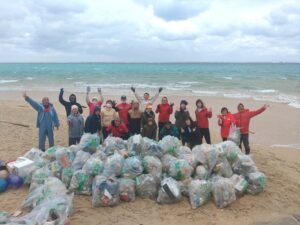 月に1回程度、SNSや新聞などを通して参加を呼びかけ、ボランティア海岸清掃を主催しています。